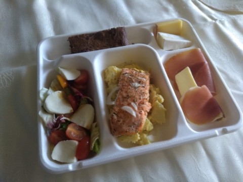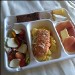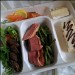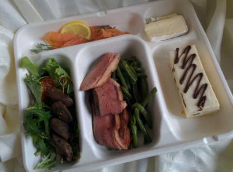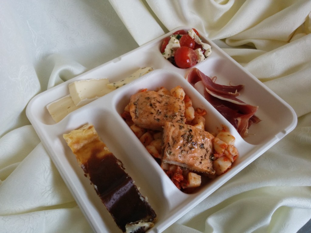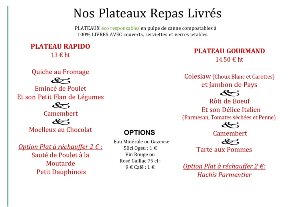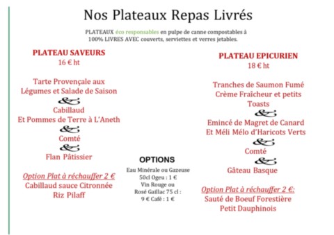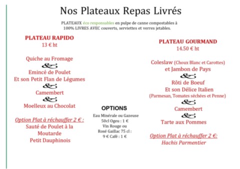 Dressés dans des plateaux compostables en pulpe de canne, couverts et bois et gobelets carton pour minimiser les déchets perdus